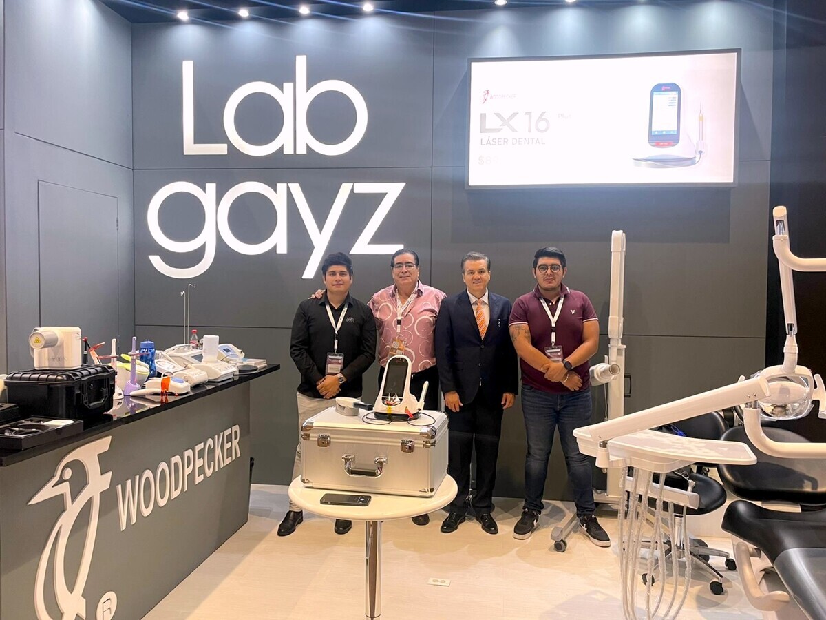 El Presidente de la Asociación Dental Mexicana, Sergio Curiel Torres (segundo por la derecha), visitó el stand de Lab Gayz en el congreso.