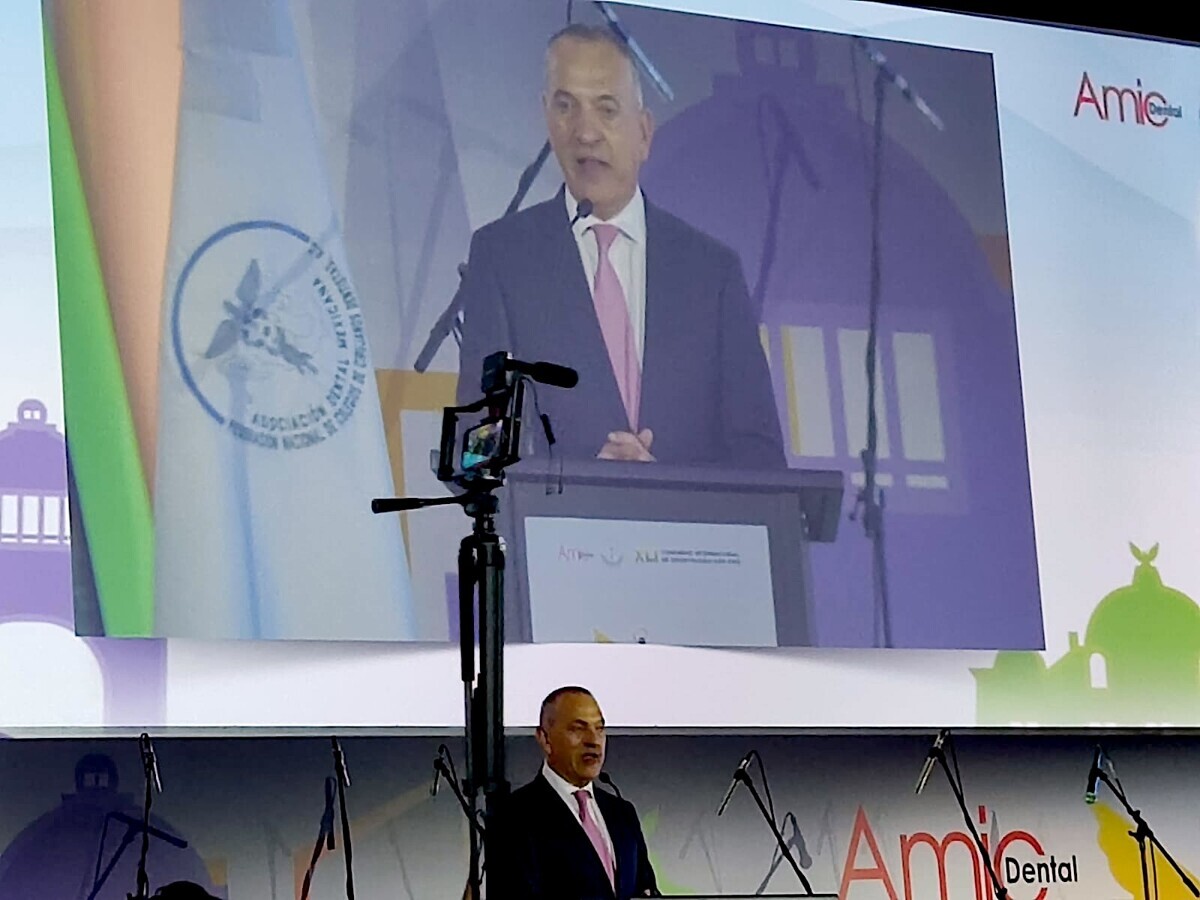 El presidente de AMIC Dental, Ayub Safar, durante la ceremonia de inauguración de la 79 edición de la mayor feria dental del mundo hispano.
