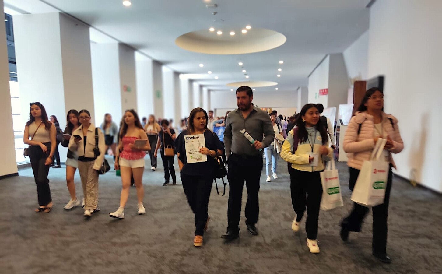 Una odontóloga camina con un ejemplar de "Today" hacia los salones de conferencias del Congreso Internacional de ADM.