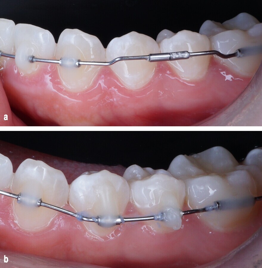 Después del diagnóstico se decide realizar un abordaje mínimamente invasivo utilizando el sistema de mini tubos Flowjac para ortodoncia4, con corrección de la maloclusión y de la mordida profunda para mejorar el overbite, la alineación y nivelación de los arcos dentarios, el apiñamiento, los diastemas y la curva de Spee. Se planifica la exodoncia de los dientes 22 y 38, tracción del diente 23 y creación del espacio para la posterior rehabilitación de diente 22 (Fig. 2).