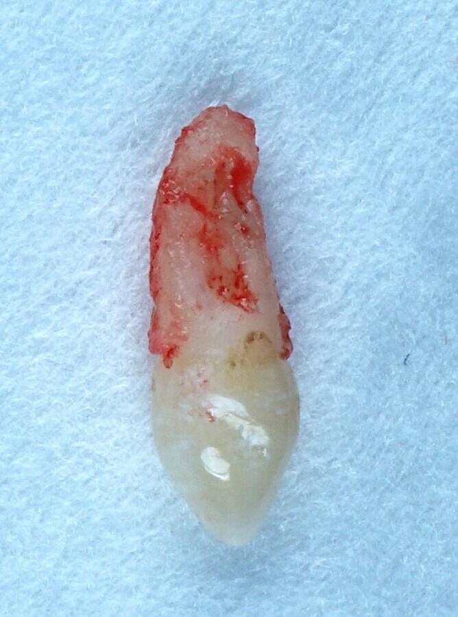 Figura 2. Exodoncia del diente 22, que presentó microdoncia aislada.