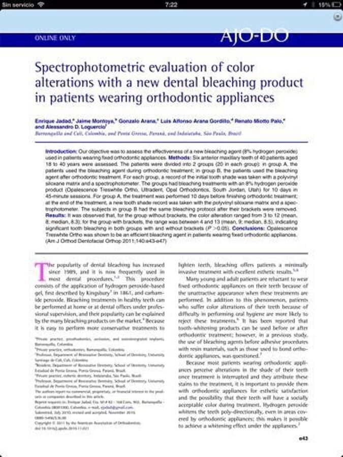Figura 8. Artículo publicado en AJODO en 2011, el primero indexado sobre aclaramientos dentales en pacientes portadores de brackets de ortodoncia.