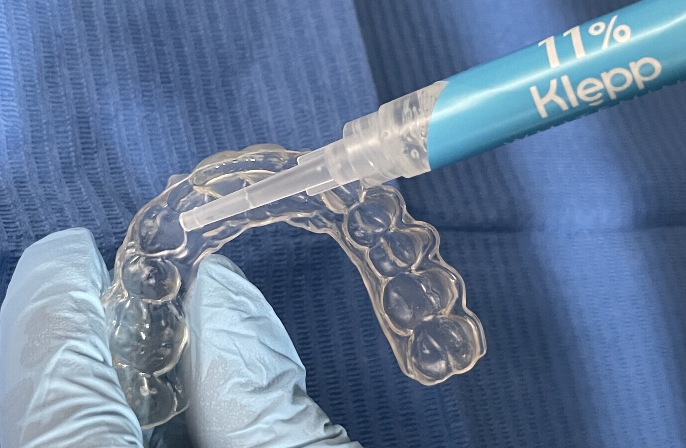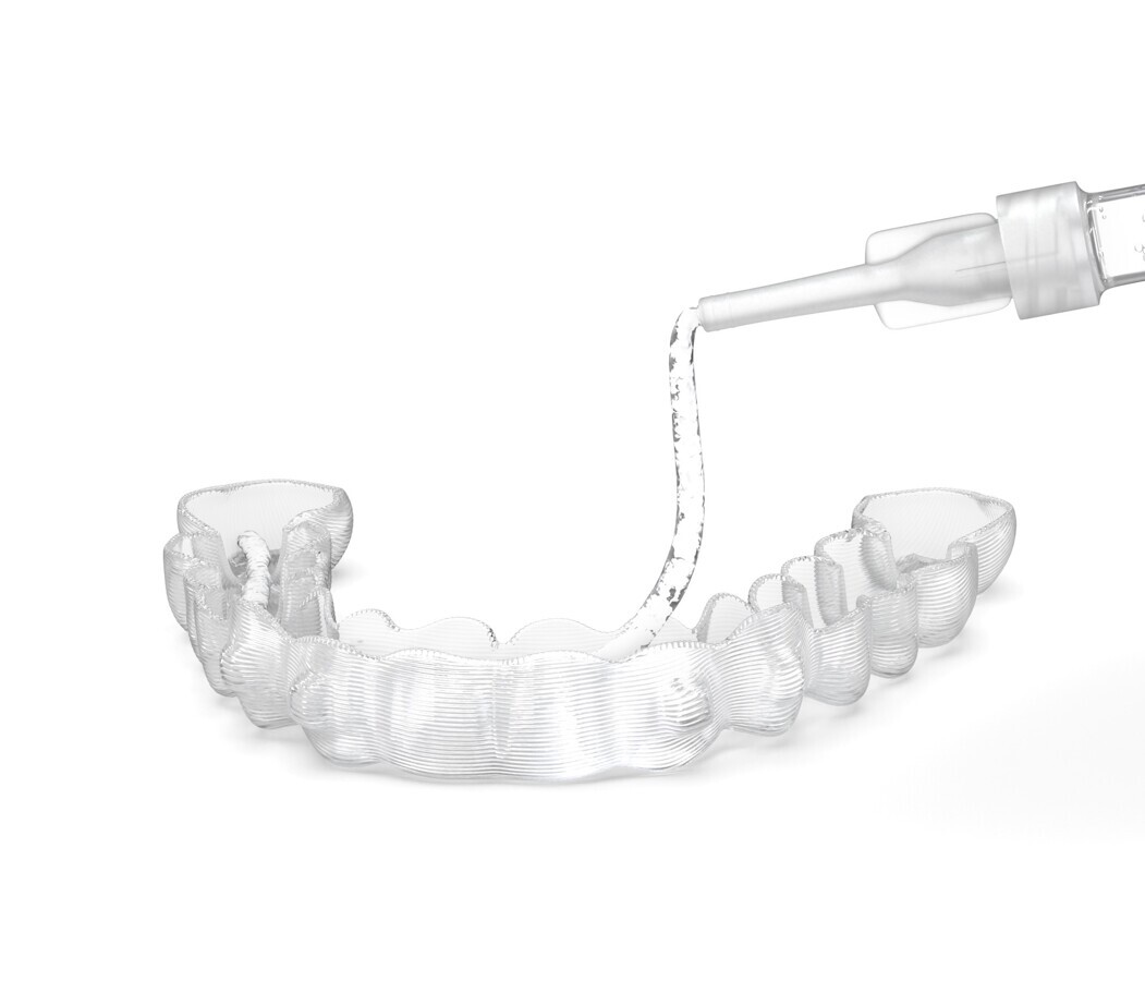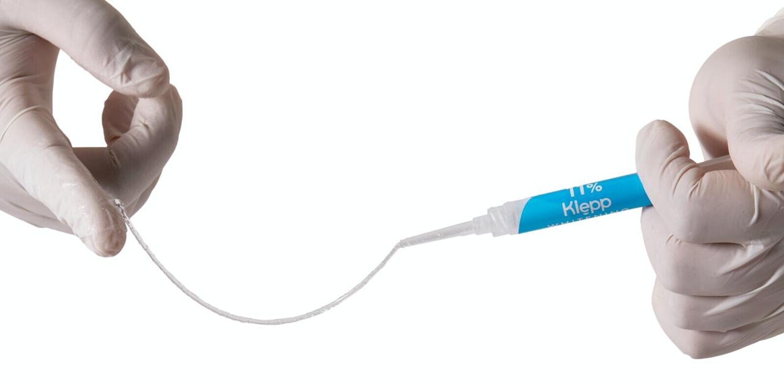 Figura 10. El gel Klepp, que contiene 11% de peróxido de carbamida, ha sido desarrollado especialmente para ser utilizado en alineadores dentales. Nótese la tixotropía del gel.
