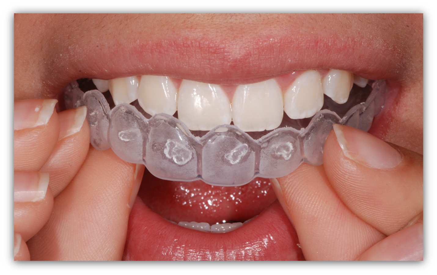 Los factores que contribuyen a la aparición de manchas en la superficie externa de los dientes son una higiene bucal deficiente, el tabaquismo o la ingesta de bebidas como café o vino. En casos aislados de pacientes con ortodoncia, el color dental puede alterarse como resultado de complicaciones derivadas de necrosis o hiperemia del tejido pulpar. Por ello, muchos pacientes de ortodoncia buscan un tratamiento de aclaramiento dental para mejorar la estética y su sonrisa. Estos dispositivos removibles de ortodoncia permiten mejorar la salud bucal y minimizan la aparición de lesiones blancas debido a la descalcificación del esmalte, lo cual es un hallazgo clínico común en casos de ortodoncia fija1,2,3.