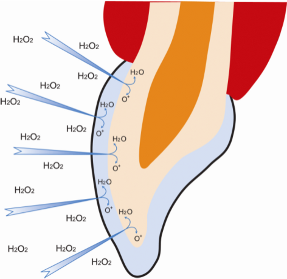 El aclaramiento en el hogar es cada vez más popular desde su introducción en 1989 por Haywood y Heymann, y para este tratamiento tenemos a nuestra disposición a los dos compuestos más utilizados: peróxido de carbamida y peróxido de hidrógeno. El peróxido de carbamida se descompone en peróxido de hidrógeno y urea, lo que genera efectos aclaradores en los dientes y un aumento del pH de la cavidad bucal. La urea, componente fundamental de la carbamida, provoca un aumento transitorio del pH oral que neutraliza aún más la saliva, cuyo pH fisiológico normal es de 6,2-7,6 y contribuye a reducir la formación de placa, así como la incidencia de descalcificación y caries. La Asociación Dental Americana aprobó el uso del peróxido de carbamida tanto en la consulta odontológica como en el hogar a bajas concentraciones3.