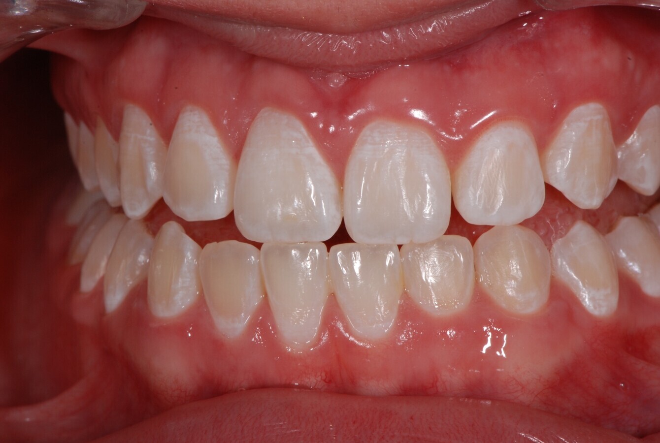 Las manchas y el oscurecimiento de los dientes son un efecto secundario temporal común del tratamiento de ortodoncia convencional con brackets, que se debe a la dificultad de los pacientes para mantener los dientes limpios durante el tratamiento. Los materiales utilizados en ortodoncia fija crean puntos de acumulación de placa, que pueden provocar la formación de precursores de manchas blancas, tinciones, caries y periodontitis1. Con el paso del tiempo, el contacto y la cantidad de la placa dental sobre la superficie dental aumenta, lo que puede irritación gingival, inflamación, hemorragia gingival y gingivitis2.