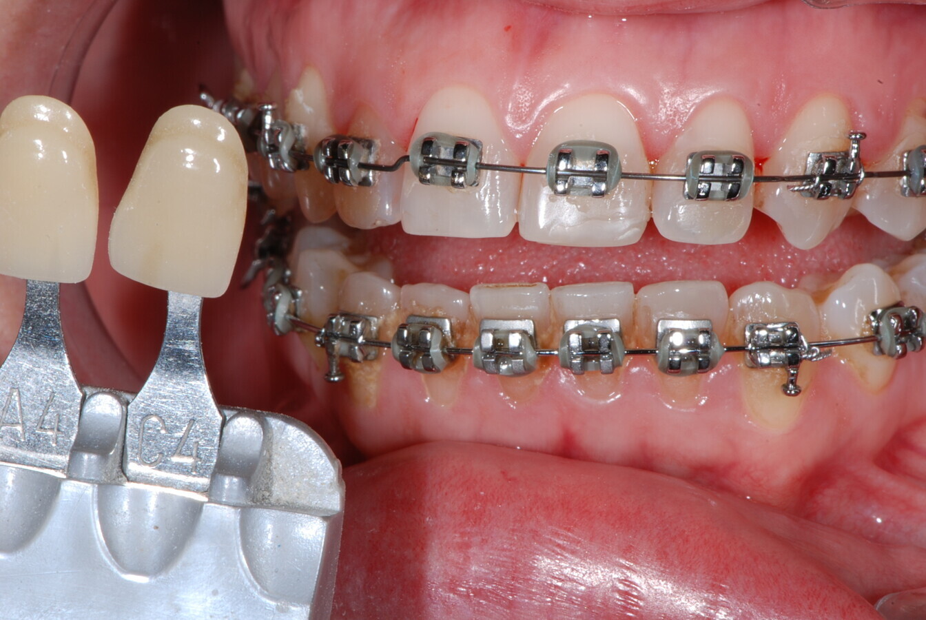 Figura 2. Caso de ortodoncia convencional en el que la paciente vio afectada sel color de sus dientes y pidió un aclaramiento dental.