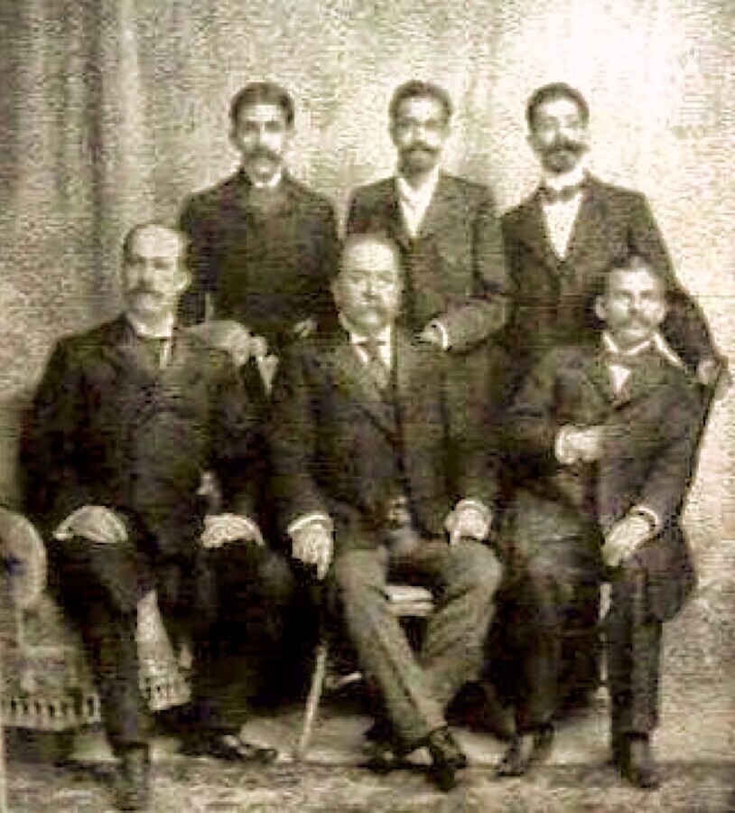 Los fundadores del Colegio Nacional de Enseñanza Dental. Desde atrás, de izquierda a derecha: Dr. José J. Rojo, Dr. Teófilo Valdés y Dr. Ricardo Figueroa. Adelante, de izquierda a derecha: Dr. Alfredo Reguera, Dr. Ricardo Crombé y Dr. Juan Falero.
