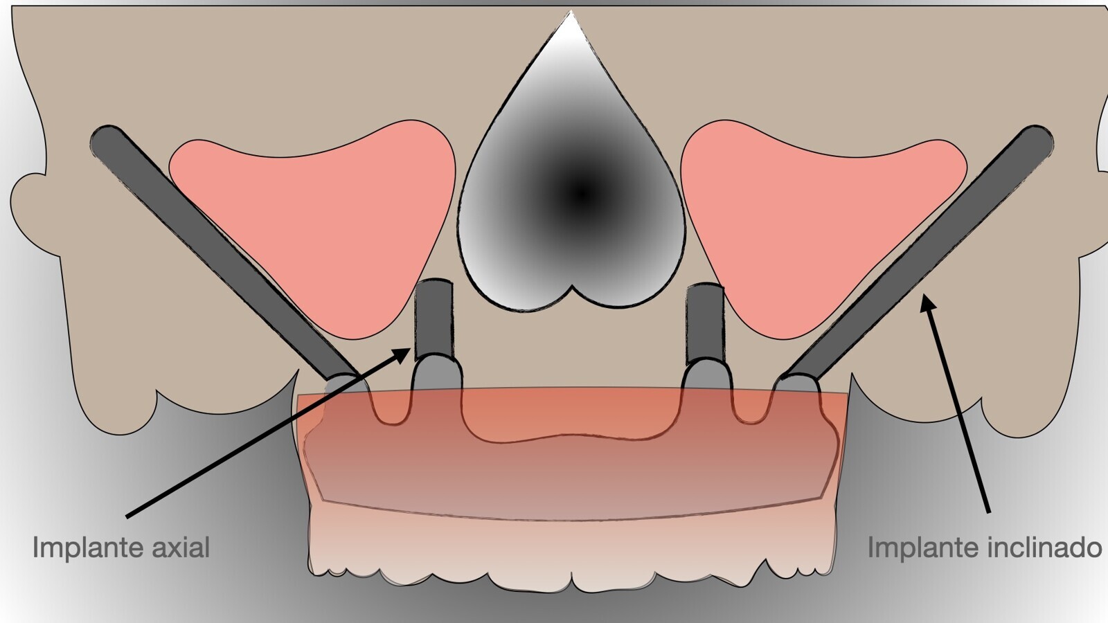 Figura 2. Prótesis maxilar sobre implantes axiales e inclinados.