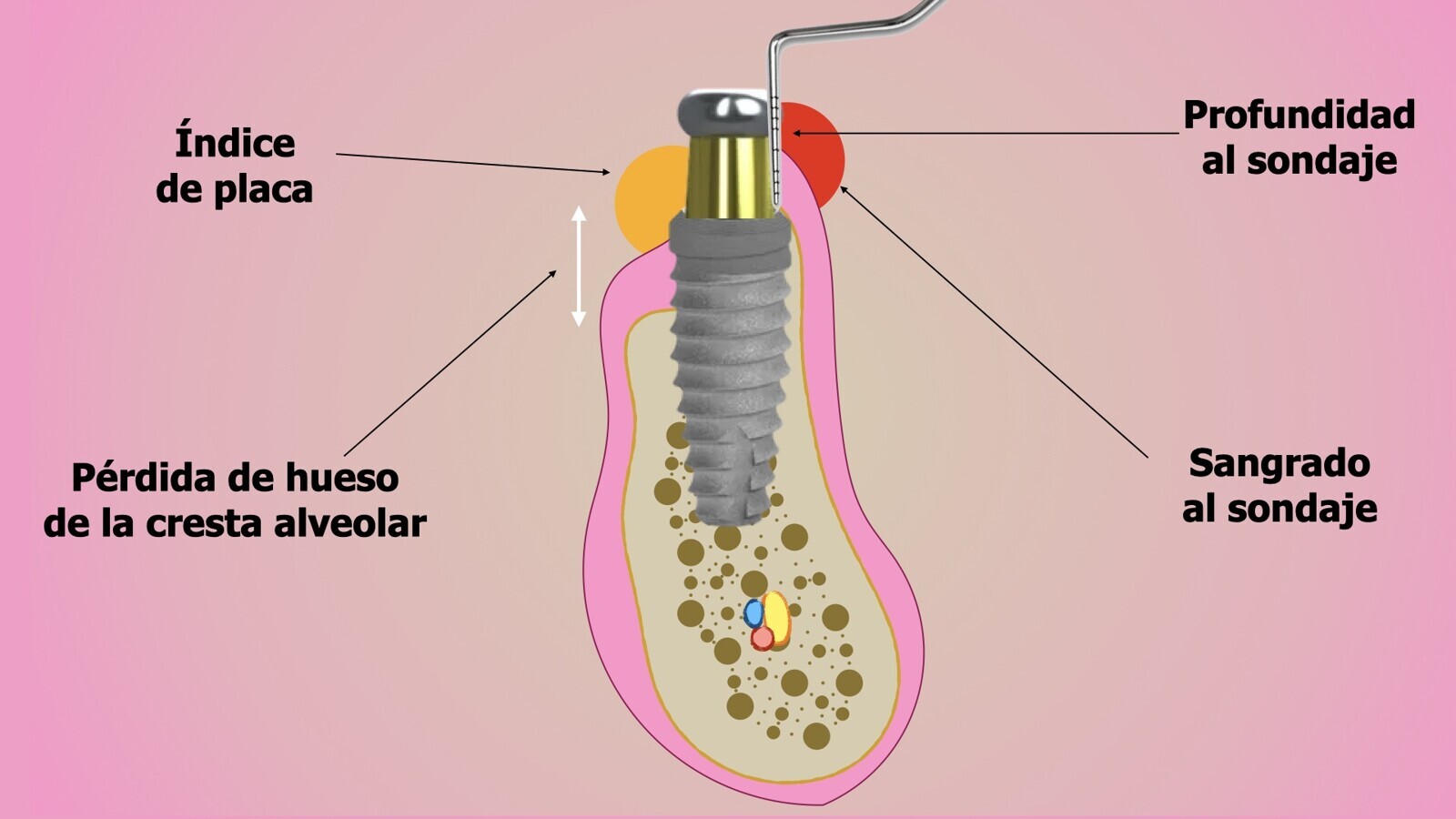 La evaluación de los índices de tejidos blandos (índice de placa, profundidad al sondaje, sangrado al sondaje) (Figura 3) indica valores similares entre la carga inmediata y diferida al año de la colocación. Se ha citado una pérdida de hueso crestal inferior a 1,5 mm como criterio de supervivencia del implante. Cabe señalar que normalmente se produce una media de 1 mm de pérdida de hueso marginal durante el primer año, que es seguida por una pérdida de 0,2 mm cada año. Los metanálisis no revelan ninguna diferencia estadística entre los 2 protocolos de carga.
