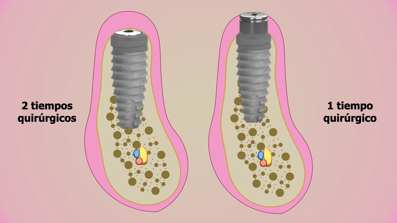 El protocolo de colocación del implante se puede realizar en 1 ó 2 tiempos quirúrgicos (Figura 2). Sin embargo, no existe una diferencia significativa en términos de pérdida temprana del implante entre las diferentes etapas quirúrgicas. Por lo tanto, la colocación de implantes en una sola etapa no parece afectar ni al implante ni a la pérdida de hueso crestal.