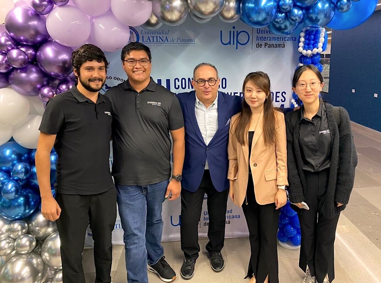 Los directivos de Shining 3D Dental, John Mendoça, Cristian Benito Elías, Laura Xin y Maite Tang viajaron desde China, Brasil y USA para acompañar al Dr. Enrique Jadad en el congreso en Panamá.