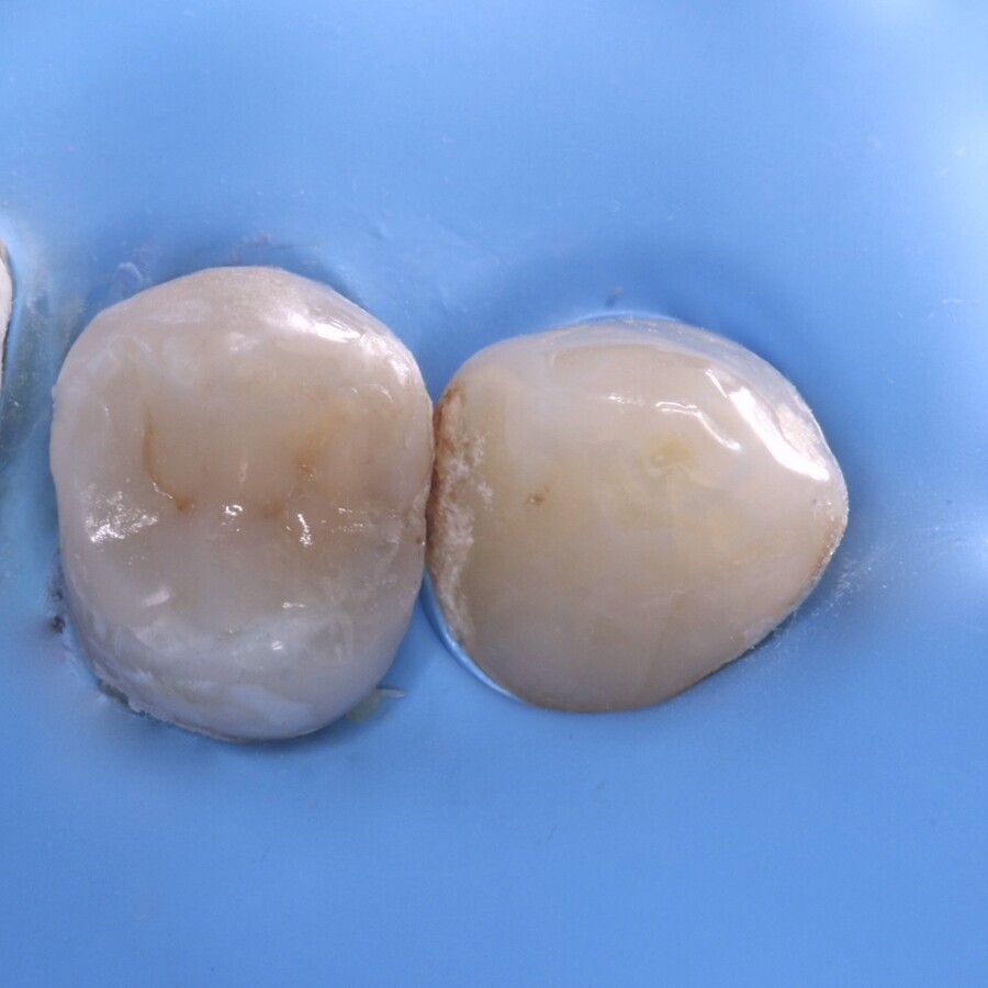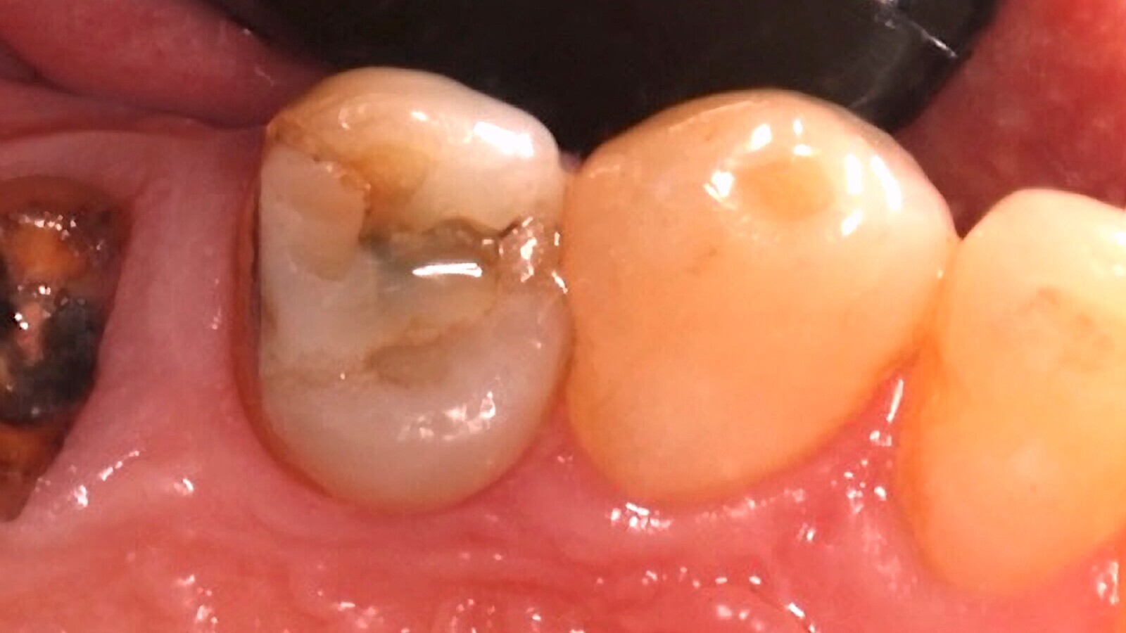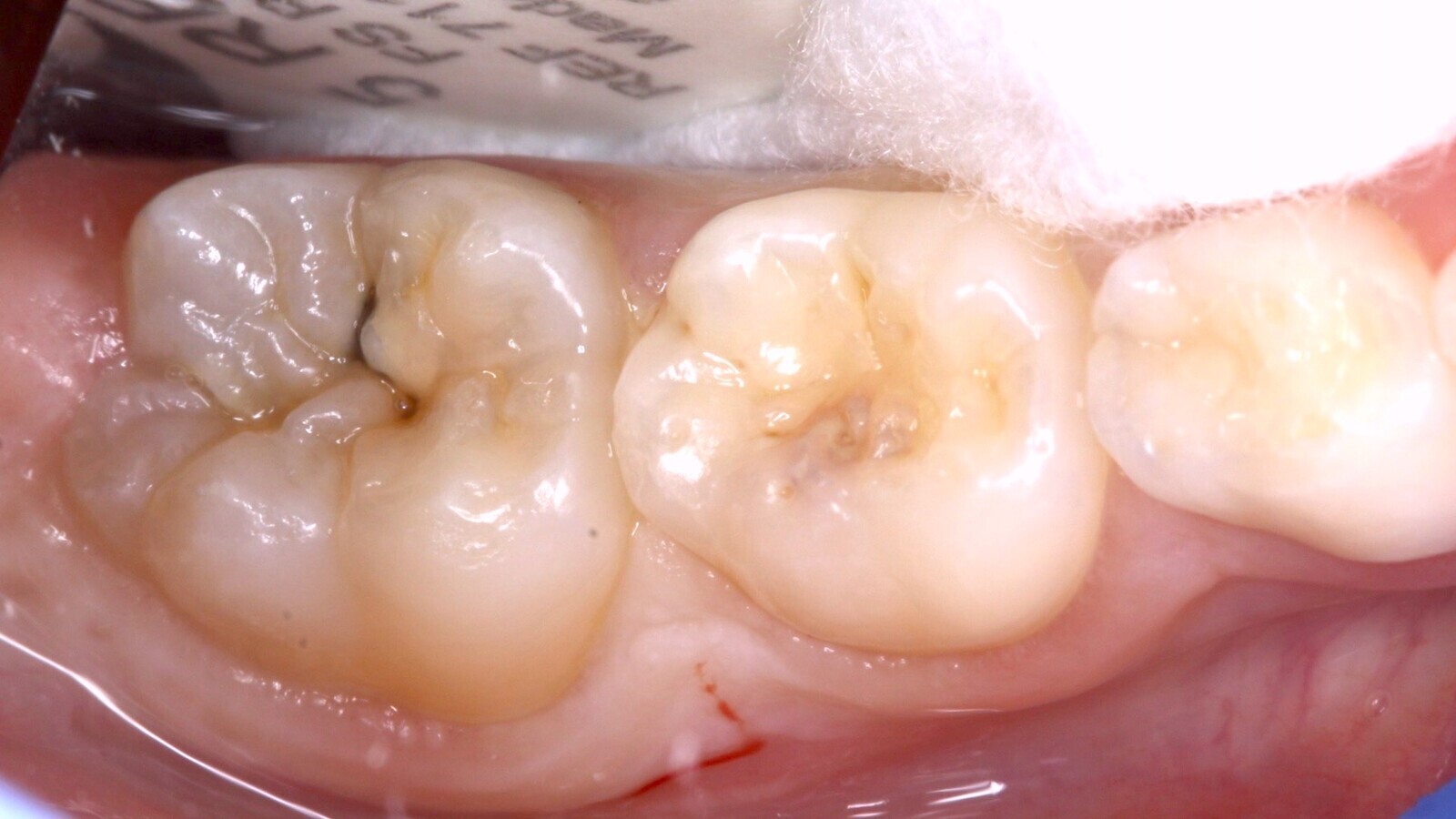 Fig. 1. El diente 46 presenta una sombra subyacente en la dentina apreciada desde oclusal.