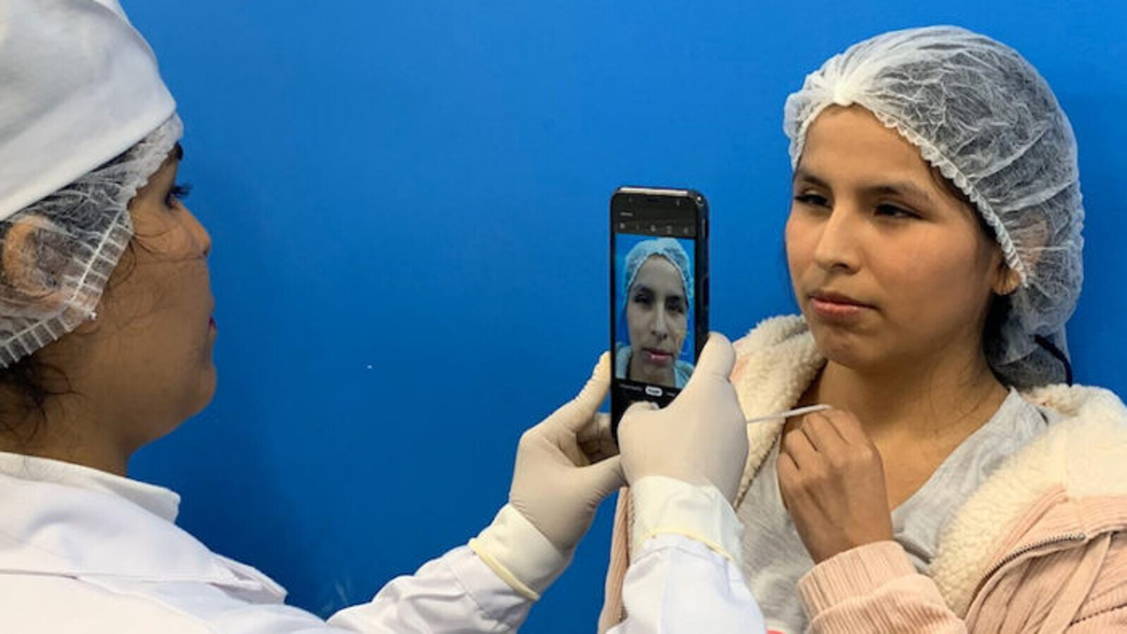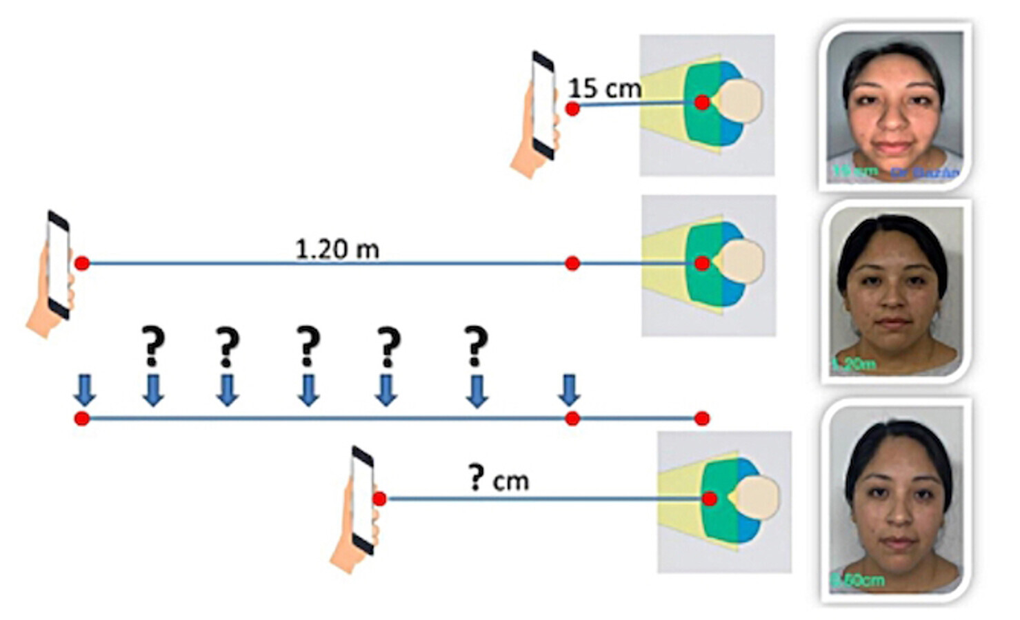 Muestra de una de las distancias a las que se debe tomar una de las fotos para calibrar la cámara del celular con objeto de evitar distorsiones de la imagen del paciente.