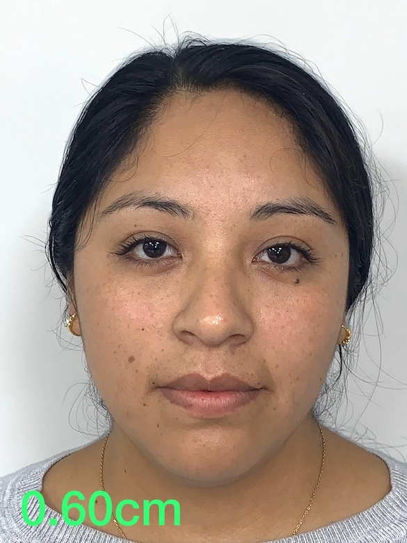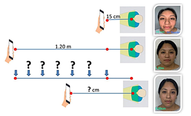 Consiste en encontrar la distancia en medida real entre la cara del paciente y la cámara, sin que se genere ninguna de las anteriores distorsiones de la cara del paciente, en el momento de la toma fotográfica.