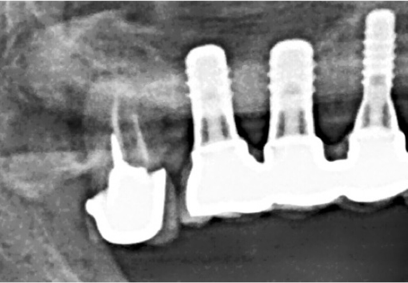Figura 6. La paciente muestra una buena osteointegración de los implantes en este control radiográfico realizado a los 30 meses.