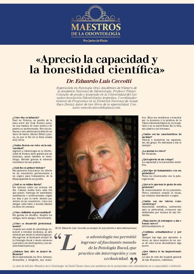 Lea también el artículo sobre el Dr. Ceccotti publicado en 2017 en portada de Dental Tribune como homenaje a su trayectoria.