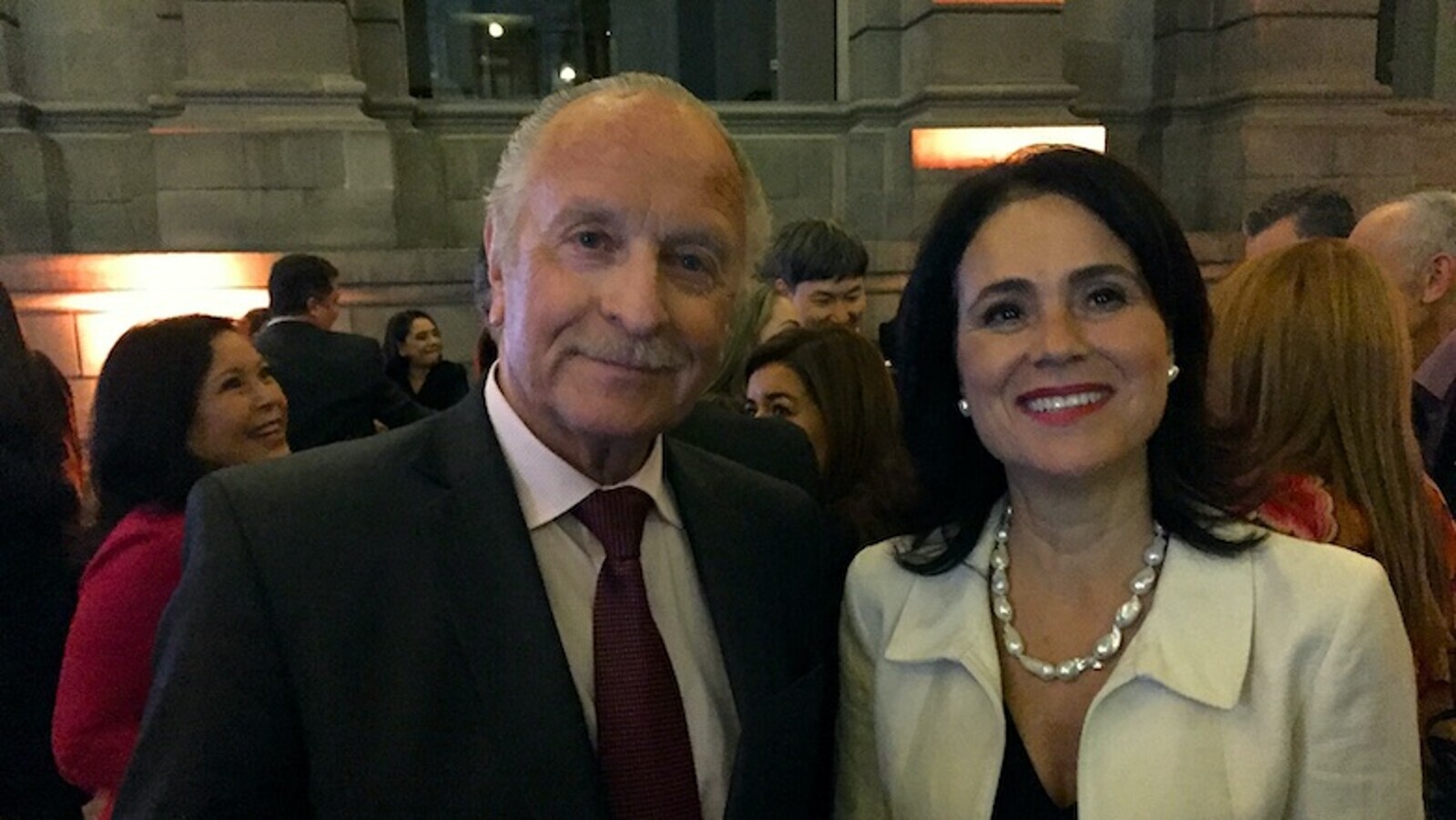 El famoso especialista argentino en Patología Oral con la presidenta electa de FDI, Dra. Ihsane Ben Yahya, en un cocktail de en el Museo Nacional de Arte de México, organizado por Fundación Asociación Dental Mexicana en 2019.