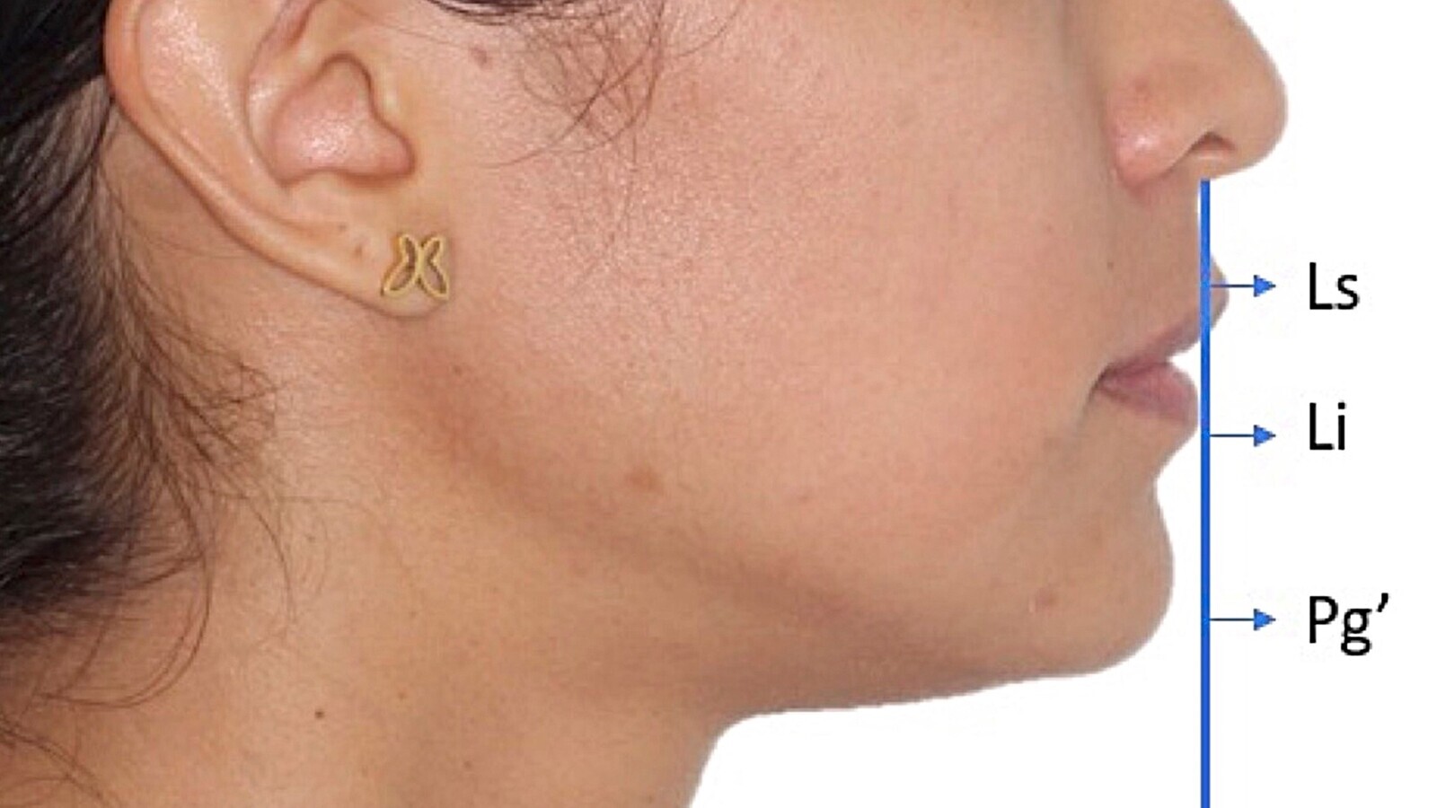 Figura 1. El análisis de Spradley es un forma de alinear el labio superior, el labio inferior y el mentón trazando una línea vertical subnasal.