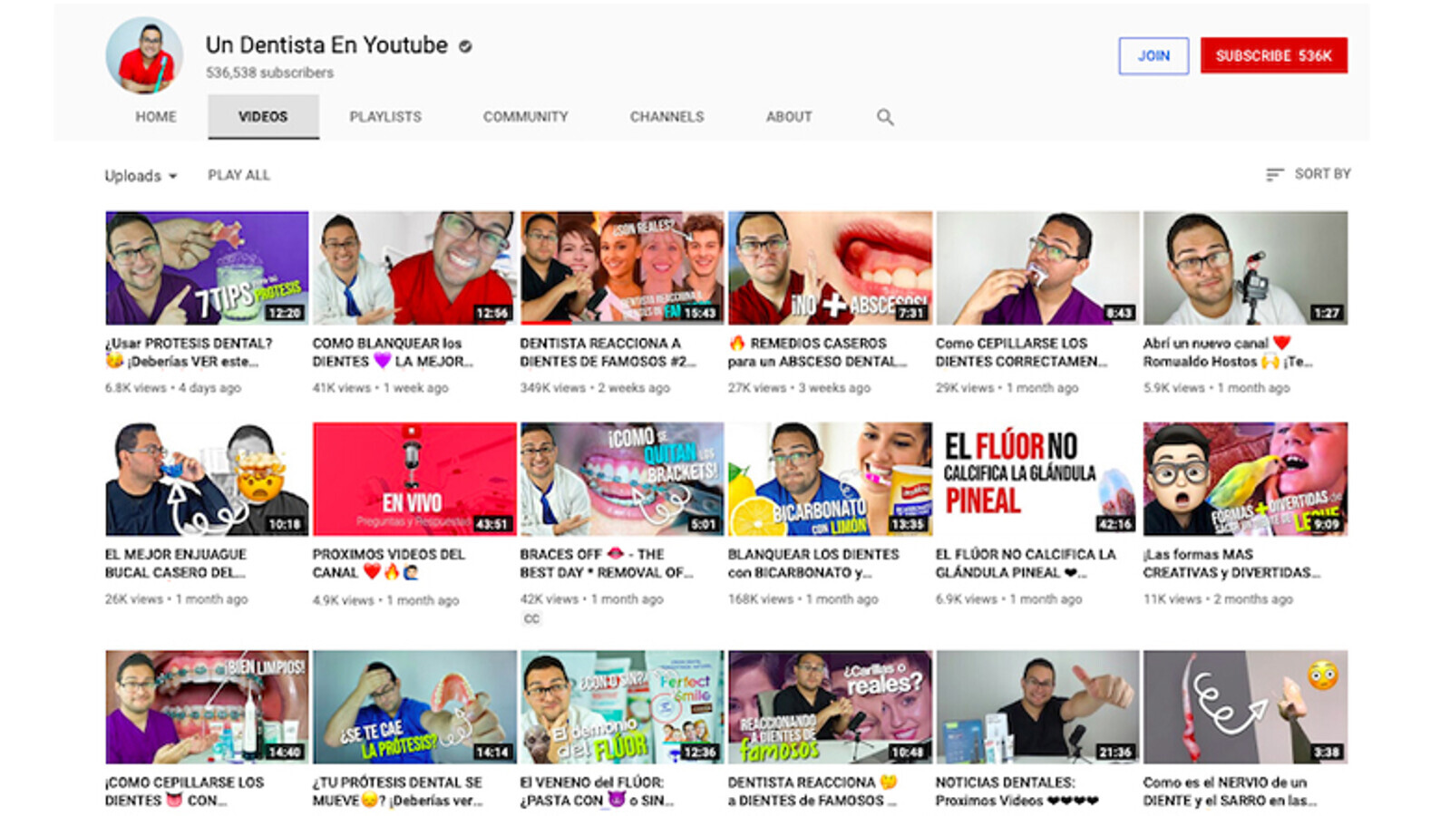 “Un dentista en YouTube” ha alcanzado más de 19 millones de visualizaciones de los más de 100 videos que tiene en su canal.