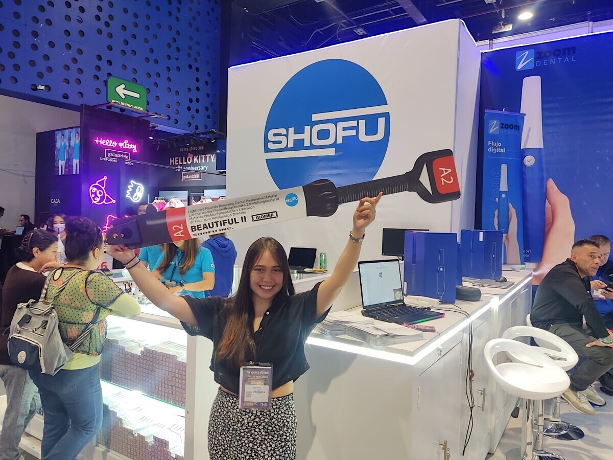 Entusiasmo contagioso en el stand de Shofu en la exposición dental mexicana.