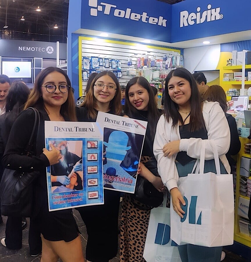 Amor por la odontología: cuatro estudiantes de odontología mexicanos, felices de poder participar en la 79 Expo AMIC Dental y de obtener la Edición Especial de Dental Tribune sobre Piezocirugía. Fotos: Maritza de los Ríos para Dental Tribune