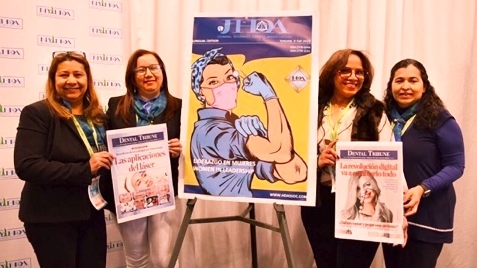 Cuatro doctoras de la Hispanic Dental Association (HDA), con ejemplares de Dental Tribune Latinoamérica: Isabel García-Leonia, de Nueva Jersey; Luz Marina Aguirre, de Nueva York, Arelys Santana, Jackson Heights, Queens, y Dilia Pimentel, de El Bronx, NY. (Foto: José Antonio Rosario)