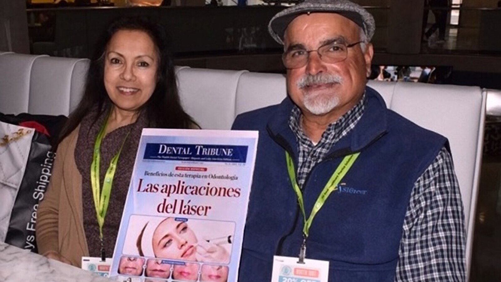 La Dra. Avril Dsouza y su esposo Roger Dsouza, de Schenactady, Nueva York, sostienen el número monográfico sobre láser de Dental Tribune Latinoamérica en el Congreso Dental de Nueva York. (Foto: José Antonio Rosario)