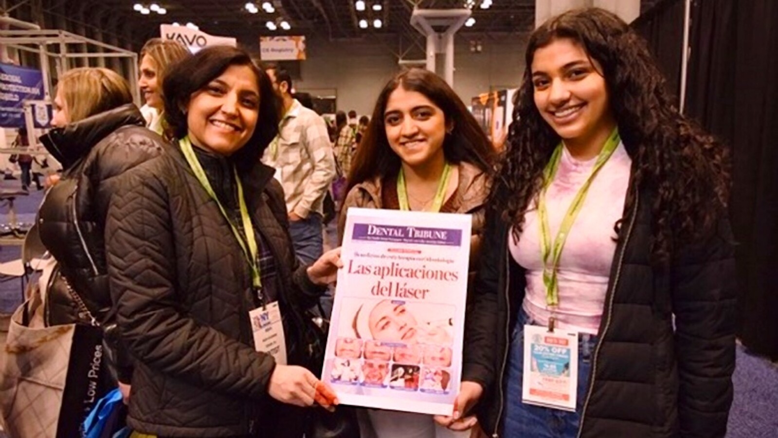 La Dra. Nidhi Khurana, que ejerce en Nueva Jersey, con sus hijas Shivangi Nanda y Shreya Nanda, que son estudiantes de odontología, en GNYDM. (Foto: José Antonio Rosario)