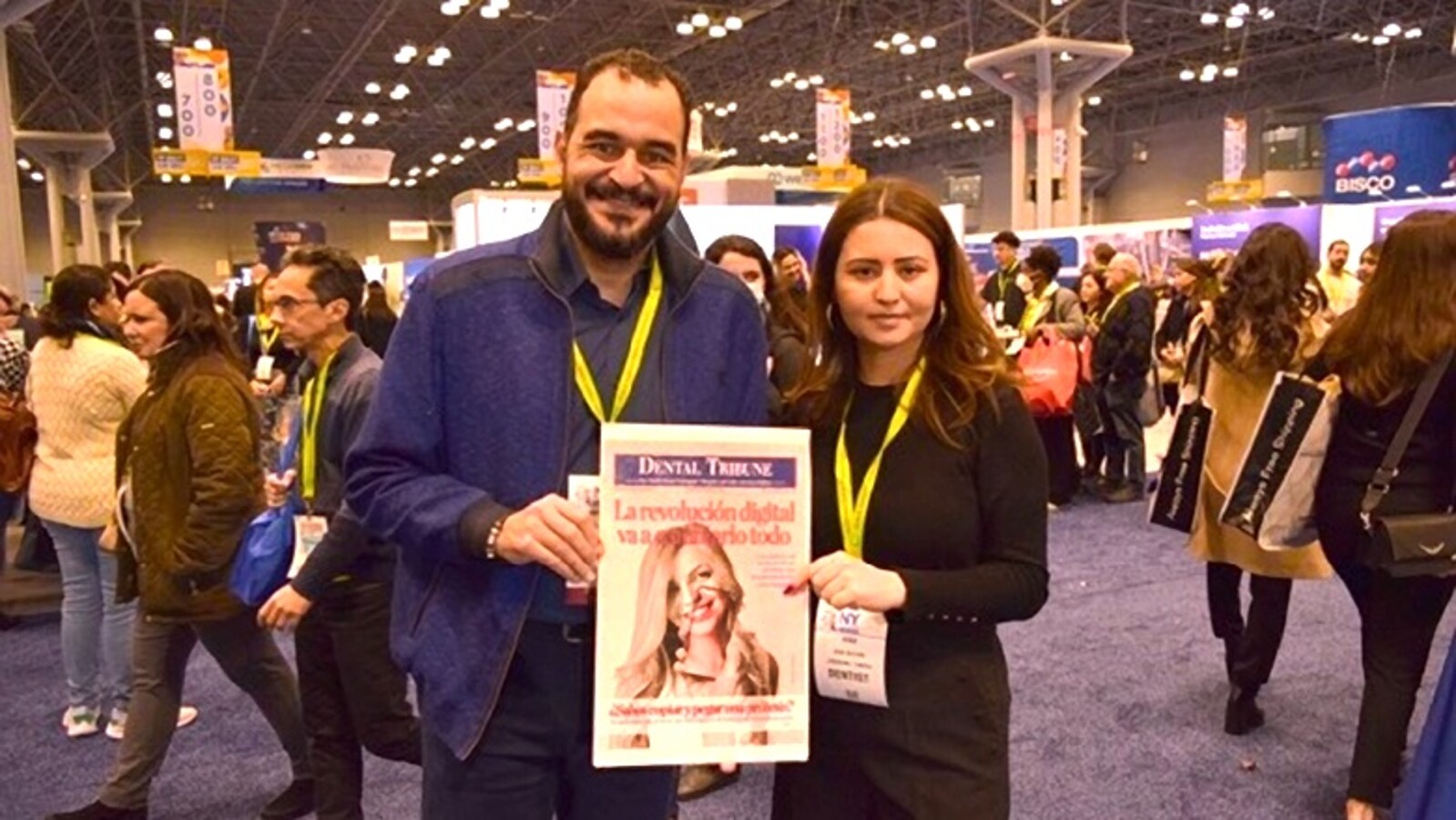 ¡Hasta en Egipto les gusta Dental Tribune Latinoamérica! El Dr. Mohammed Moustafa Khattab de Alejandría, Egipto, y la Dra. Hiba Soltani, de Jendouba, Tunez, muestran la edición de Dental Tribune Latinoamérica dedicada a la Odontología Digital. (Foto: José Antonio Rosario)