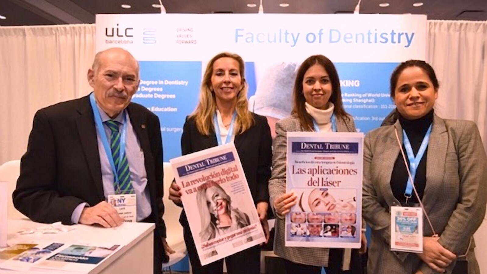 Los representantes de la Universidad Internacional de Cataluña (UIC), en la imagen en su stand en Greater New York Dental Meeting, estuvieron liderados por el Decano de Odontología, Dr. Luis Giner Tarrida y la coordinadora académica, Elisa Sanagustín, junto con Susana Lozano y Marta Cuadrado. (Foto: José Antonio Rosario)