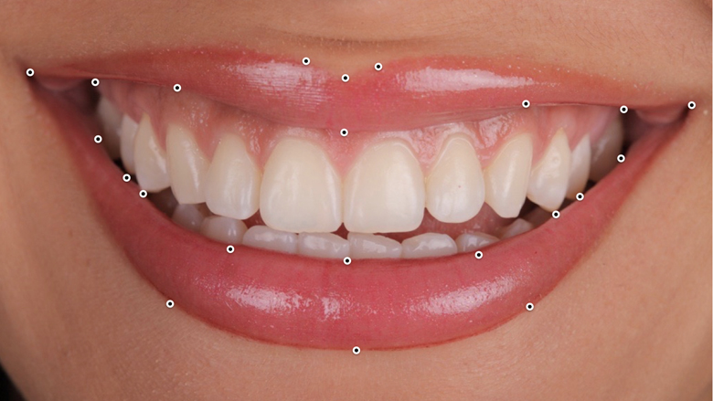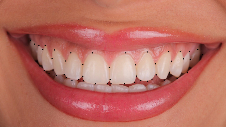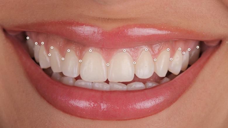 En el análisis dentolabial, debemos ser más precisos en nuestras referencias. Por lo tanto, aumentamos el nivel de detalle de los puntos referenciados y sus interacciones. Así, tendremos puntos de referencia labial como los de la Figura 3, puntos de referencia gingival como en la Figura 4 y puntos de referencia dental como los de la Figura 5.