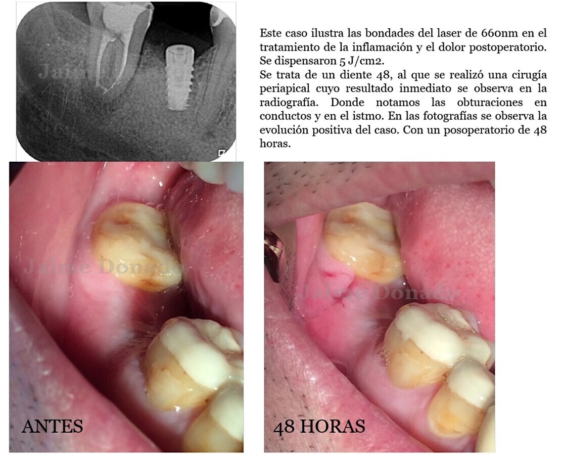 Figura 3. Caso clínico de control de dolor e inflamación en el diente 48 al aplicar en el postoperatorio inmediato Fotobiomodulación mediante láser.