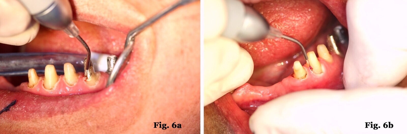 Figuras 6a - 6b. Separación gingival para prótesis fija sobre dientes con un láser de diodo en modo pulsado.