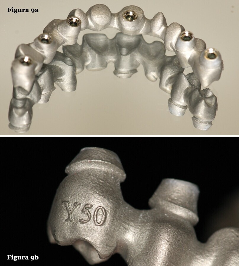 Figuras 9a - 9b. Estructuras protésicas fabricada en una aleación de Co-Cr, mediante la técnica de impresión 3D de sinterización selectiva por láser.