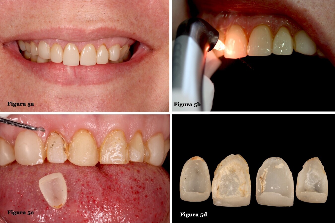 Hecho así, se podrá remover la carilla sin poner en riesgo el lecho dentario, ni el tejido pulpar; incluso, en ocasiones la carilla se puede rescatar intacta y volverse a usar, si las circunstancias lo permiten (Figura 5).