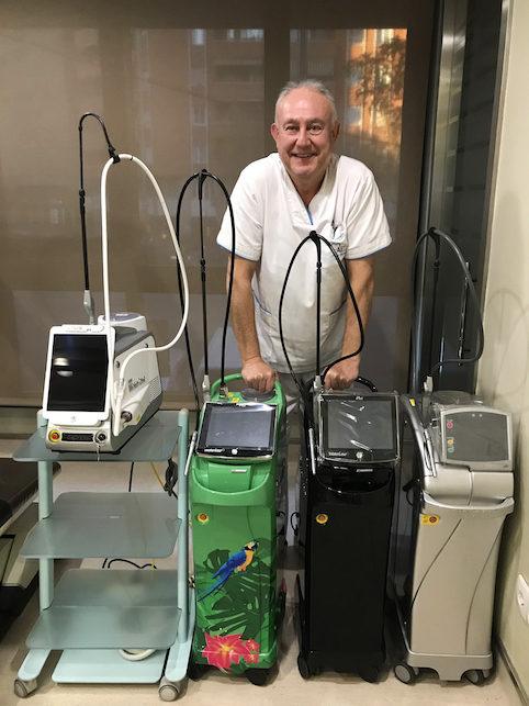 El pionero en la aplicación del láser en Odontología con su colección de equipos de láser.