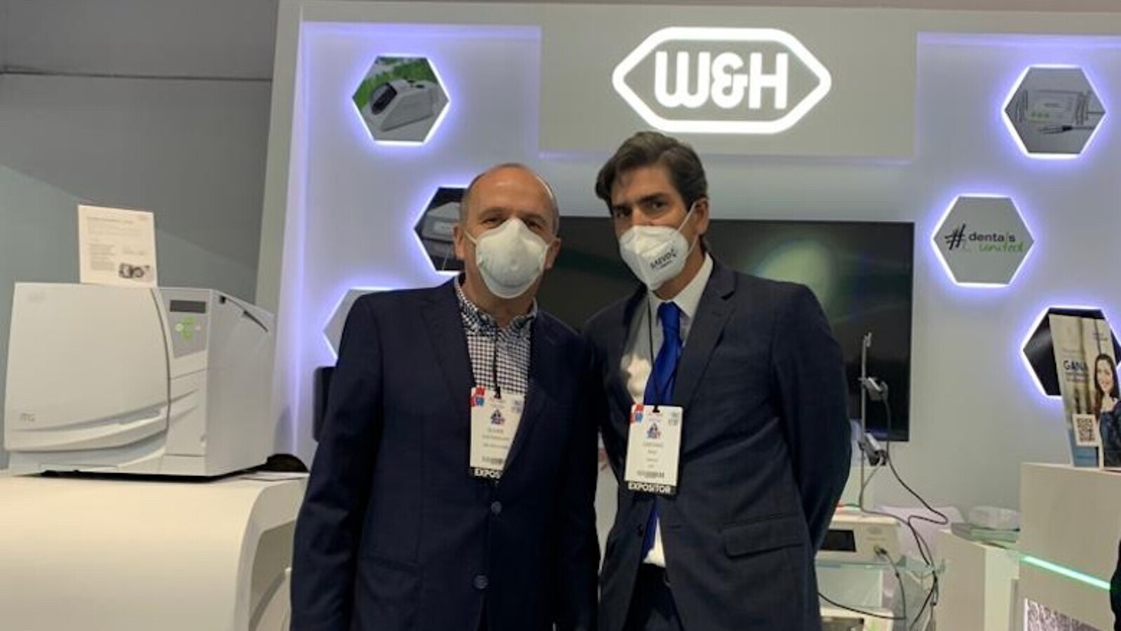 Oliver Goetzdendorff (izquierda), gerente para América Latina de W&H, compañía que presentó una amplia serie de ofertas en la feria mexicana, desde esterilizadores a motores quirúrgicos, con Caetano Biagi, CEO de la empresa brasileña Alliage.