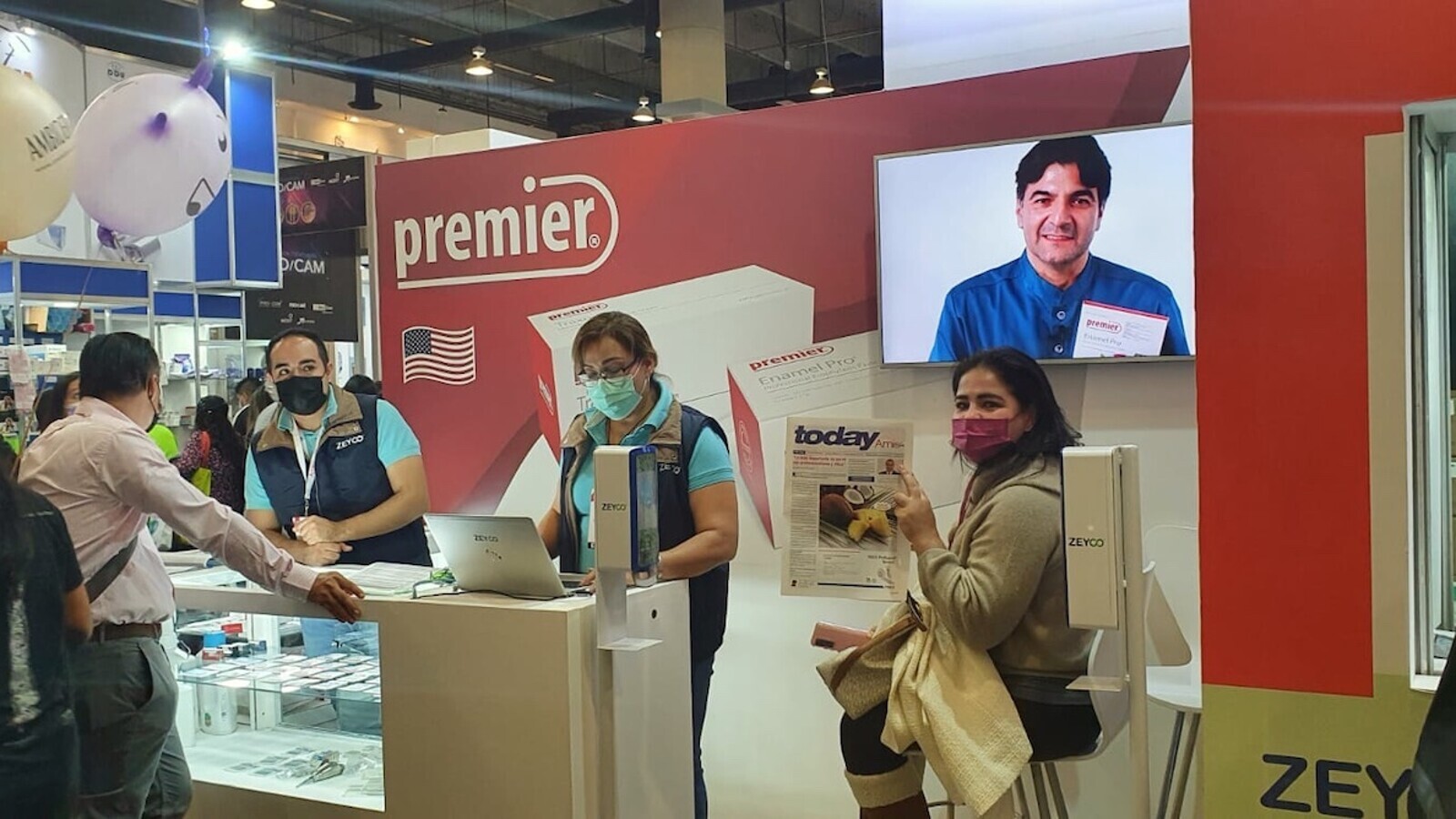 El director de Premier para México, Carlos Pozada Luna (en la pantalla), presentó sus productos en Expo AMIC Dental.