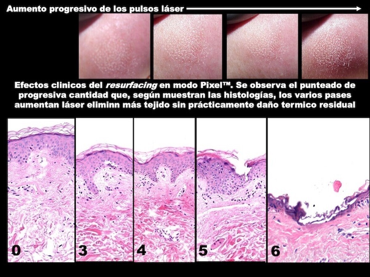 Desde que el resurfacing convencional con láser se realizara por ablación de la totalidad de la epidermis y parte de la dermis papilar, han pasado muchos años. Los láseres ablativos (el de CO2 y el de Er:YAG, que continúan empleándose), hoy lo hacen con una tecnología sofisticada preparada para mejorar el control del efecto térmico del láser, que deposita su energía en el tejido en un modo que conocemos como “fraccional”. Es más, el modo de distribución de los impactos del láser puede hacerse de forma secuencial (un impacto al lado del otro, dejando entre ellos un puente de piel sin tratar), de tal forma que el daño térmico, terapéuticamente controlado que se ejerce sobre la piel, permita su más temprana recuperación y se eviten significativamente las complicaciones.