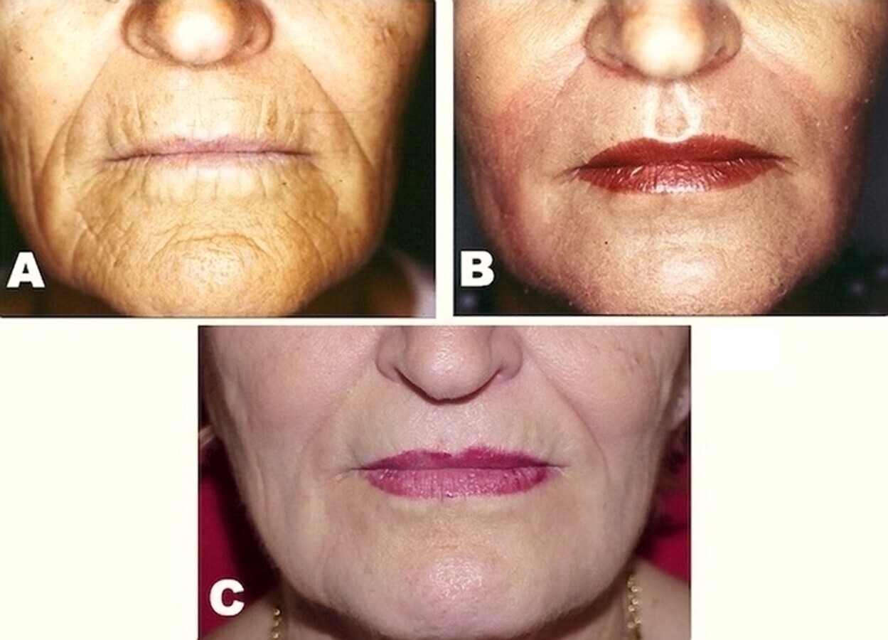 En los labios, por ejemplo, los intentos de corregir las arrugas —que producen cambios antiestéticos significativos— se solían tratar con procedimientos quirúrgicos (enfocados mayormente a estiramientos de la piel facial), exfoliación química o mecánica, inserción de prótesis y remodelación o eliminación de parte de piel y/o mucosa, junto con correcciones para recuperar volumen empleando inyecciones de relleno. Pero la epidermis, y la presencia no solo de arrugas sino de trastornos pigmentarios, junto con cambios en la textura y la apariencia externa de la piel, no siempre obtenían correcciones satisfactorias con las intervenciones quirúrgicas convencionales (Fig. 3).