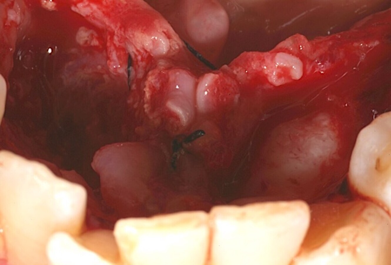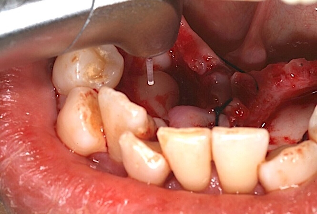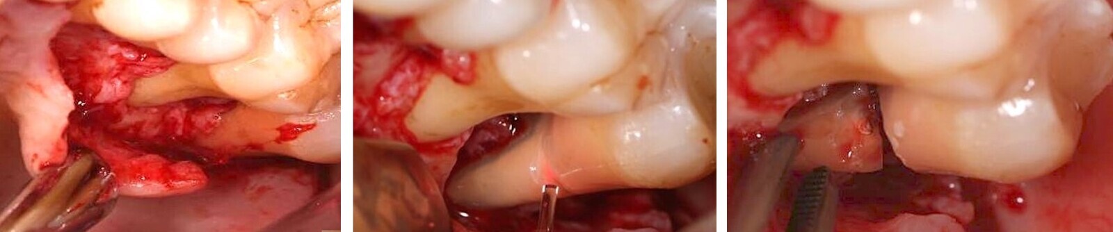 Algunos láseres como los de erbio, y en mi día a día en concreto el de Er,Cr:YSGG (Waterlase), permiten realizar un corte óseo quirúrgico muy preciso (Figuras 9-13), que transmite un daño térmico mínimo a los tejidos adyacentes9.
