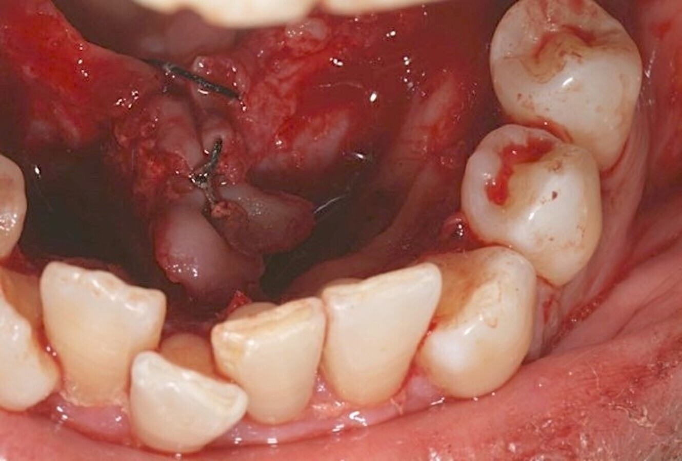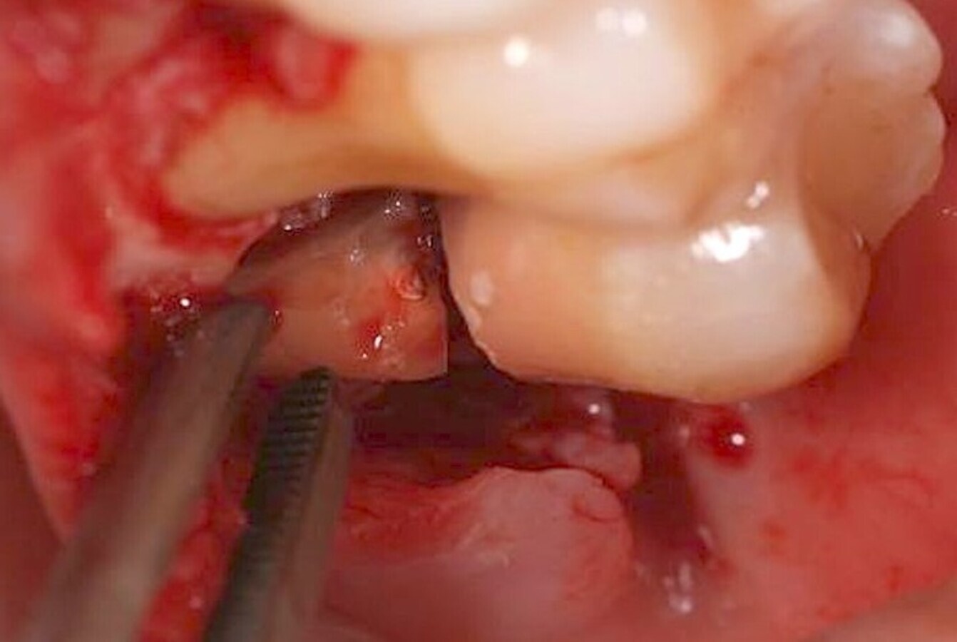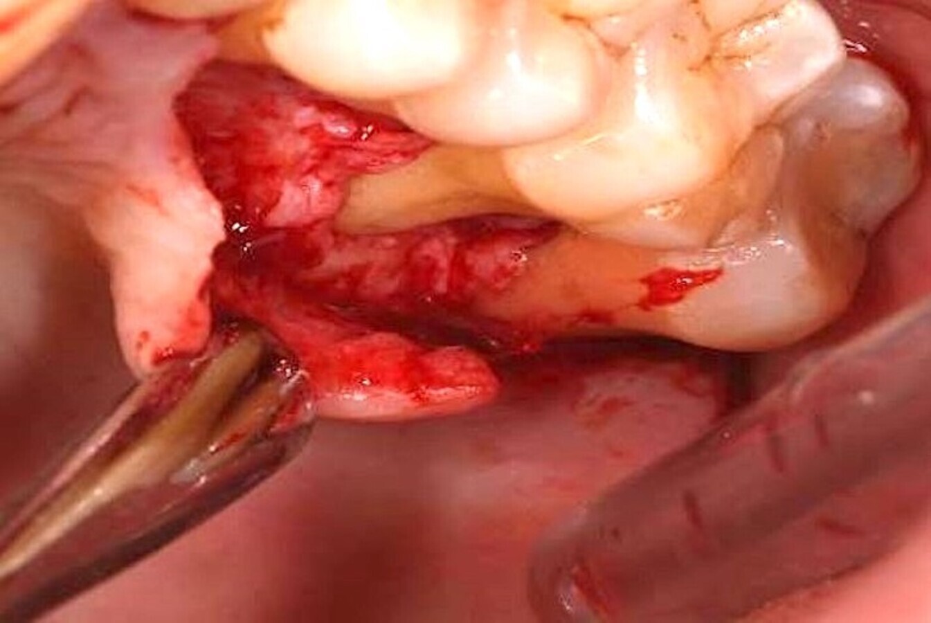 Algunos láseres como los de erbio, y en mi día a día en concreto el de Er,Cr:YSGG (Waterlase), permiten realizar un corte óseo quirúrgico muy preciso (Figuras 9-13), que transmite un daño térmico mínimo a los tejidos adyacentes9.