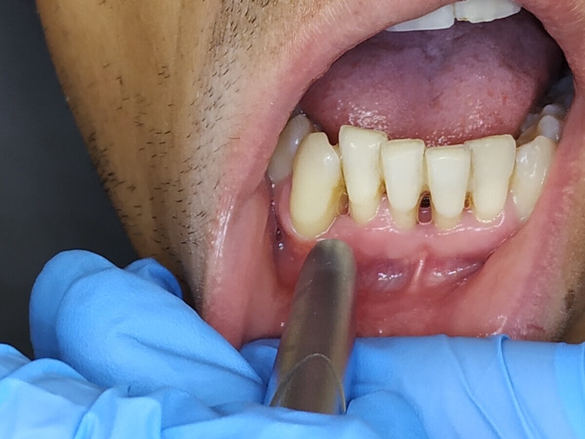 Figura 1. El tratamiento de la enfermedad periodontal se puede realizar mediante la técnica convencional de raspado y alisado radicular.