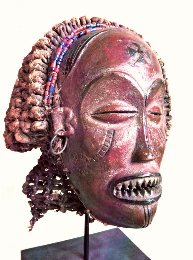 Colección privada. Derechos reservados. Los afilados dientes de esta máscara de madera de Angola (alrededor de 1970), que se cree que se utilizaban para morder el brazo del enemigo en combate, son uno de los símbolos que se exploran en el libro.