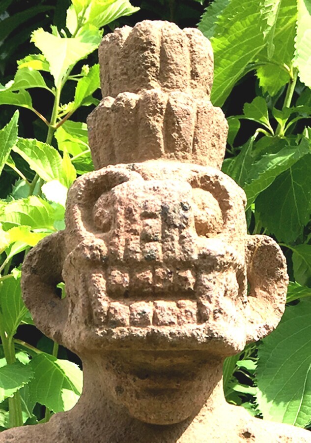 Colección privada. Derechos reservados. Escultura de basalto de un hombre con máscara del Dios del Maíz, una de las principales deidades pre-Colombinas, hallada en Veracruz, México.