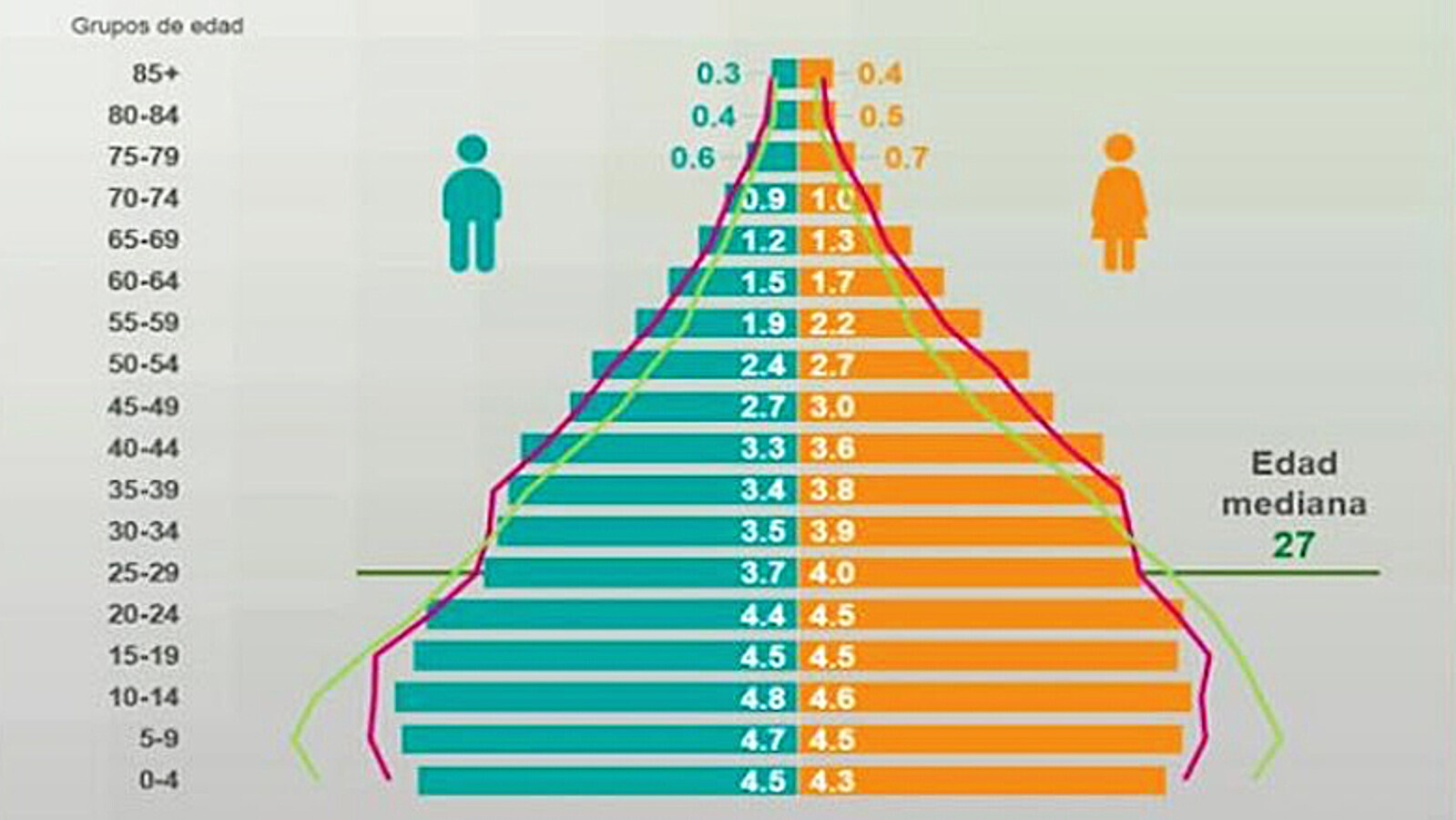 La pirámide poblacional se ha transformado en un prisma rectangular, lo cual conlleva repercusiones económicas para el sistema de pensiones. (Fuente: Instituto Nacional de Estadística y Geografía de México).