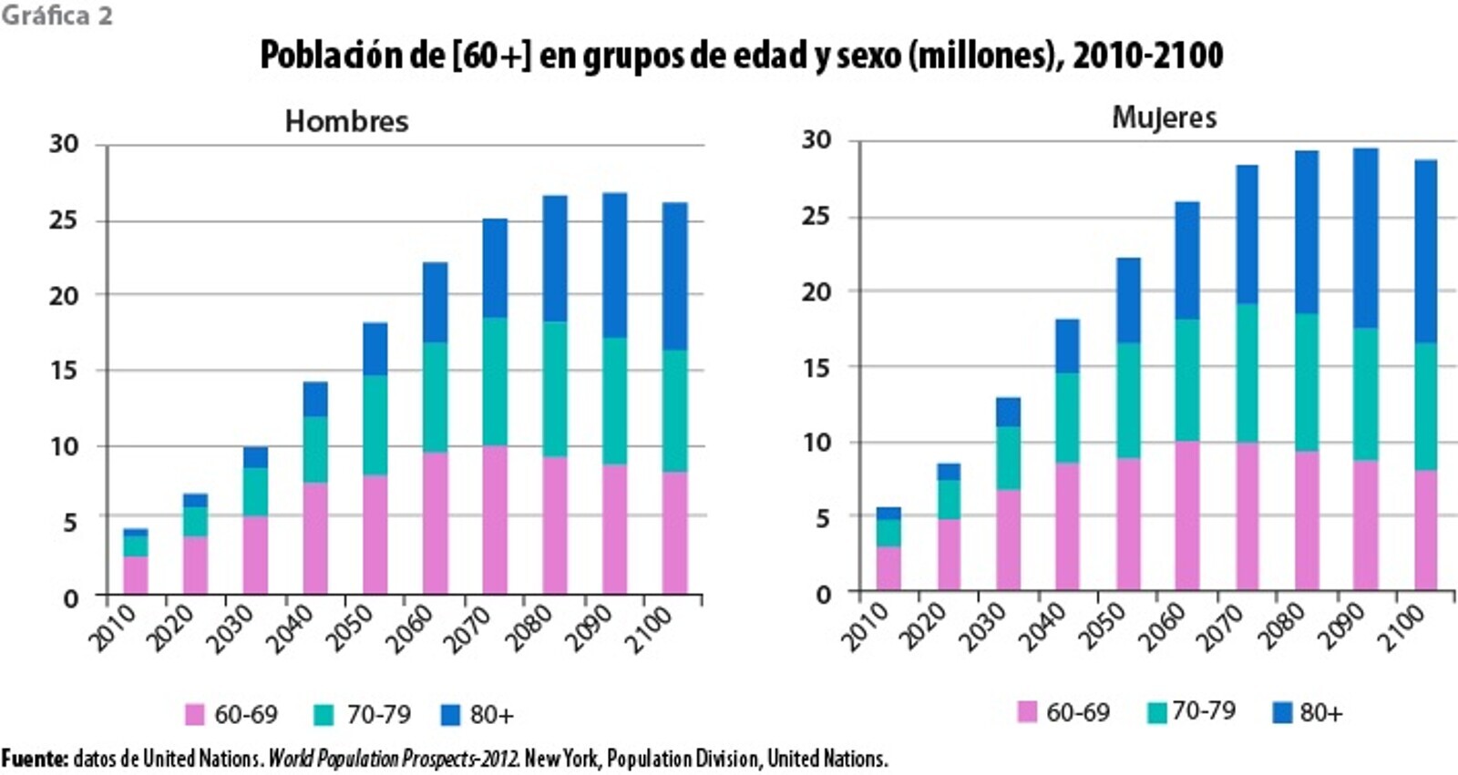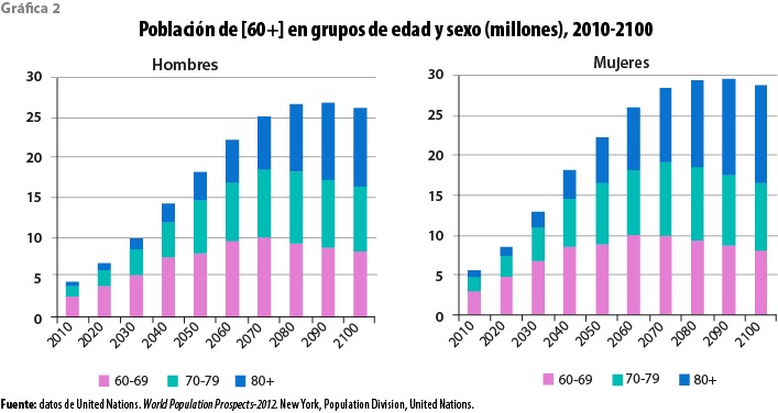 La principal característica del grupo 60 y + es la mayor presencia de mujeres que de hombres en las edades mayores, situación que se ha denominado feminización de la vejez. (Fuente: Instituto Nacional de Estadística y Geografía de México).