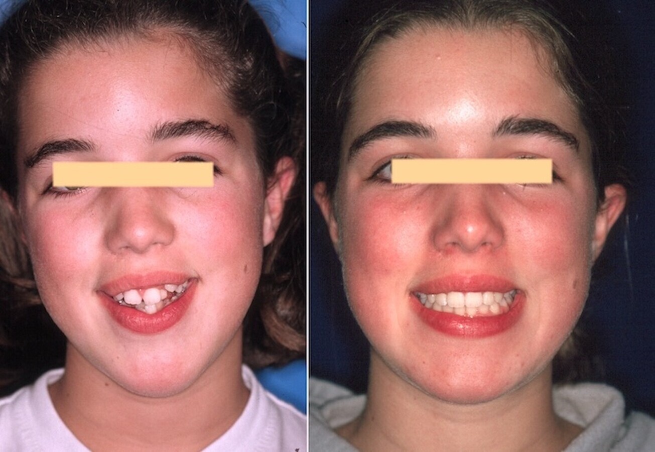 Figura 6. El resultado final estético de la sonrisa, del caso anterior, depende del control del anclaje, la fricción, la biomecánica y la formación y experiencia del ortodoncista, no del hecho de hacer o no extracciones.