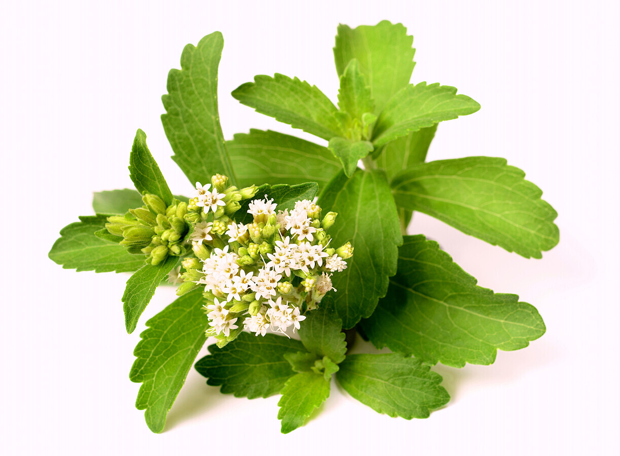 Stevia(Stevia rebaudiana bertoni). Edulcorante natural. Es un poderoso antioxidante. Controla el peso y trata la obesidad. Antihipertensivo. Tiene efecto contra el Streptococco mutans, bacteria responsable de la caries dental. Tiene efecto inmunomodulador.